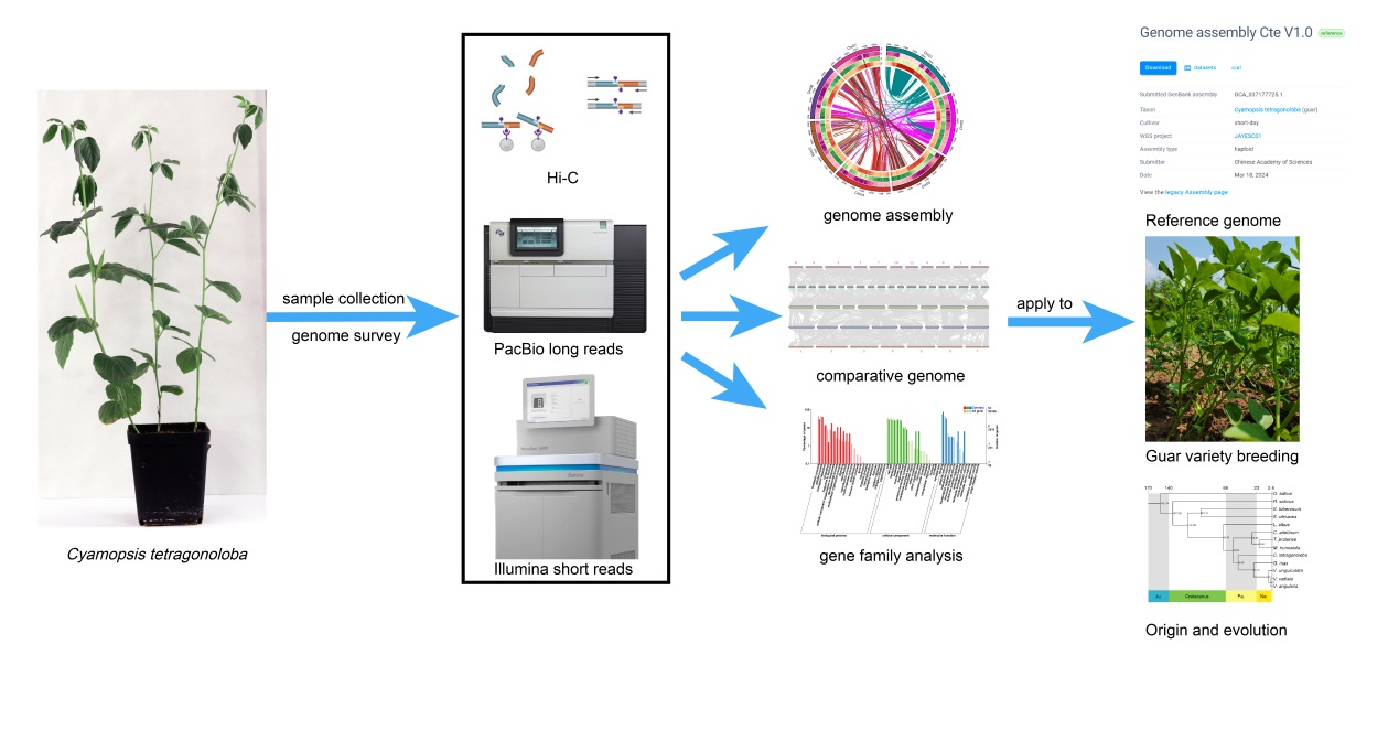 ?近日,中国科学院成都生物研究所马欣荣研究员团队在国际老牌一区TOP期刊《Industrial Crops and Products》(2024, 216:118748)上发表题为“Leguminous industrial crop guar (Cyamopsis tetragonoloba): the chromosome-level reference genome de novo assembly”的研究成果,报道了高质量瓜尔豆染色体级别从头组装参考基因组