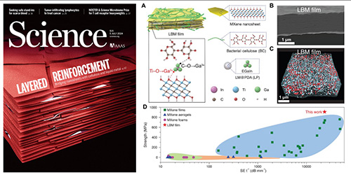 相关研究成果以“液态金属顺序桥联诱导的超强碳化钛薄膜(Ultrastrong MXene film induced by sequential bridging with liquid metal)”为题,于2024年7月5日以封面文章发表在《科学》(Science)上