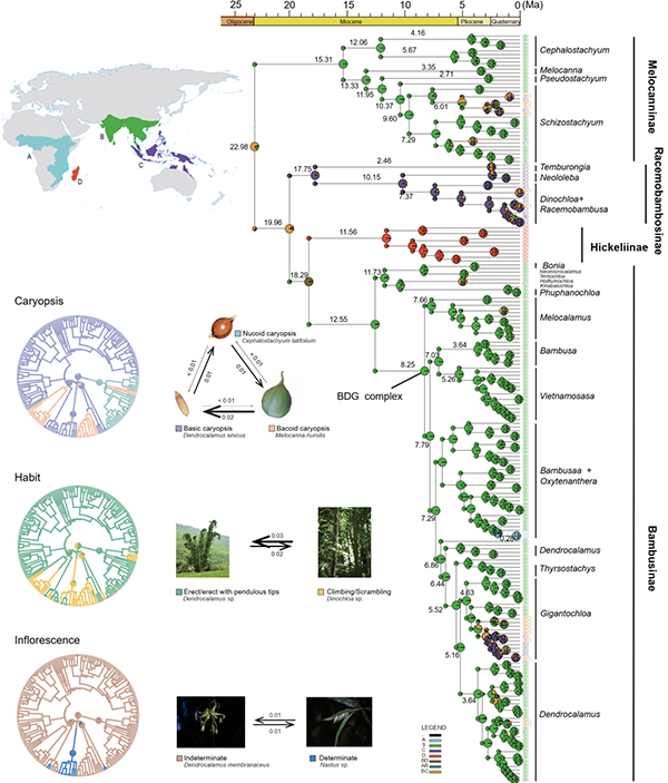 昆明植物所在旧世界热带木本竹类起源和形态性状演化研究中取得新进展