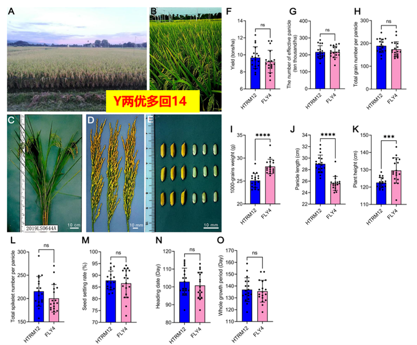 图1 两系杂交水稻新品种—Y两优多回14(HTRM12)的田间农艺性状表现