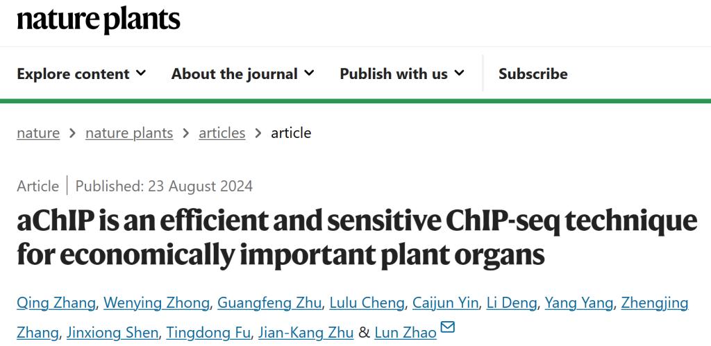 近日,华中农业大学作物遗传改良全国重点实验室油菜遗传改良创新团队赵伦课题组在国际学术期刊Nature Plants发表了题为“aChIP is an efficient and sensitive ChIP-seqtechnique for economically important plant organs”的研究论文