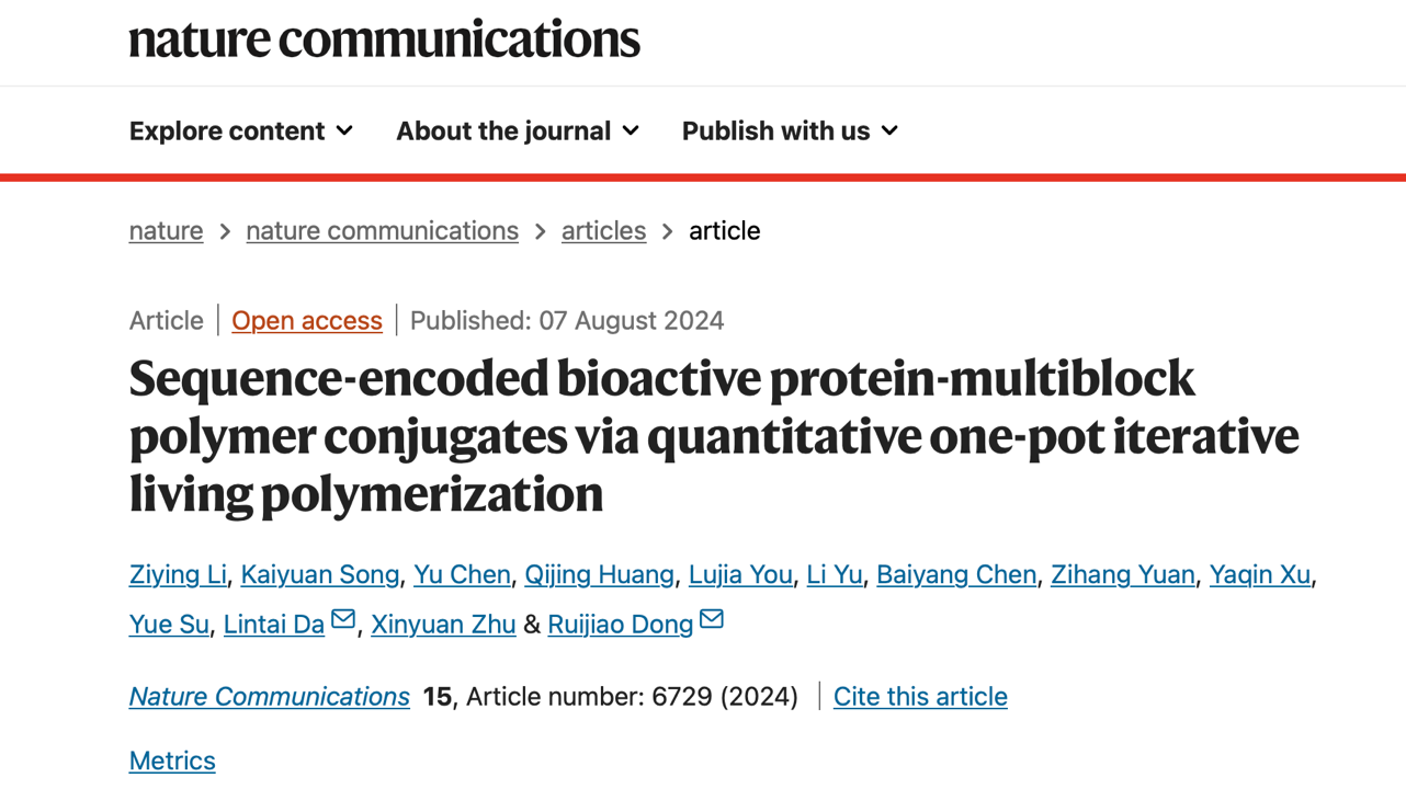 相关论文“Sequence-encoded bioactive protein- multiblock polymer conjugates via quantitative one-pot iterative living polymerization”为题,于近日发表在《Nature Communications》上
