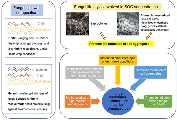 图3?真菌细胞壁组成及提升真菌残体含量的主要措施