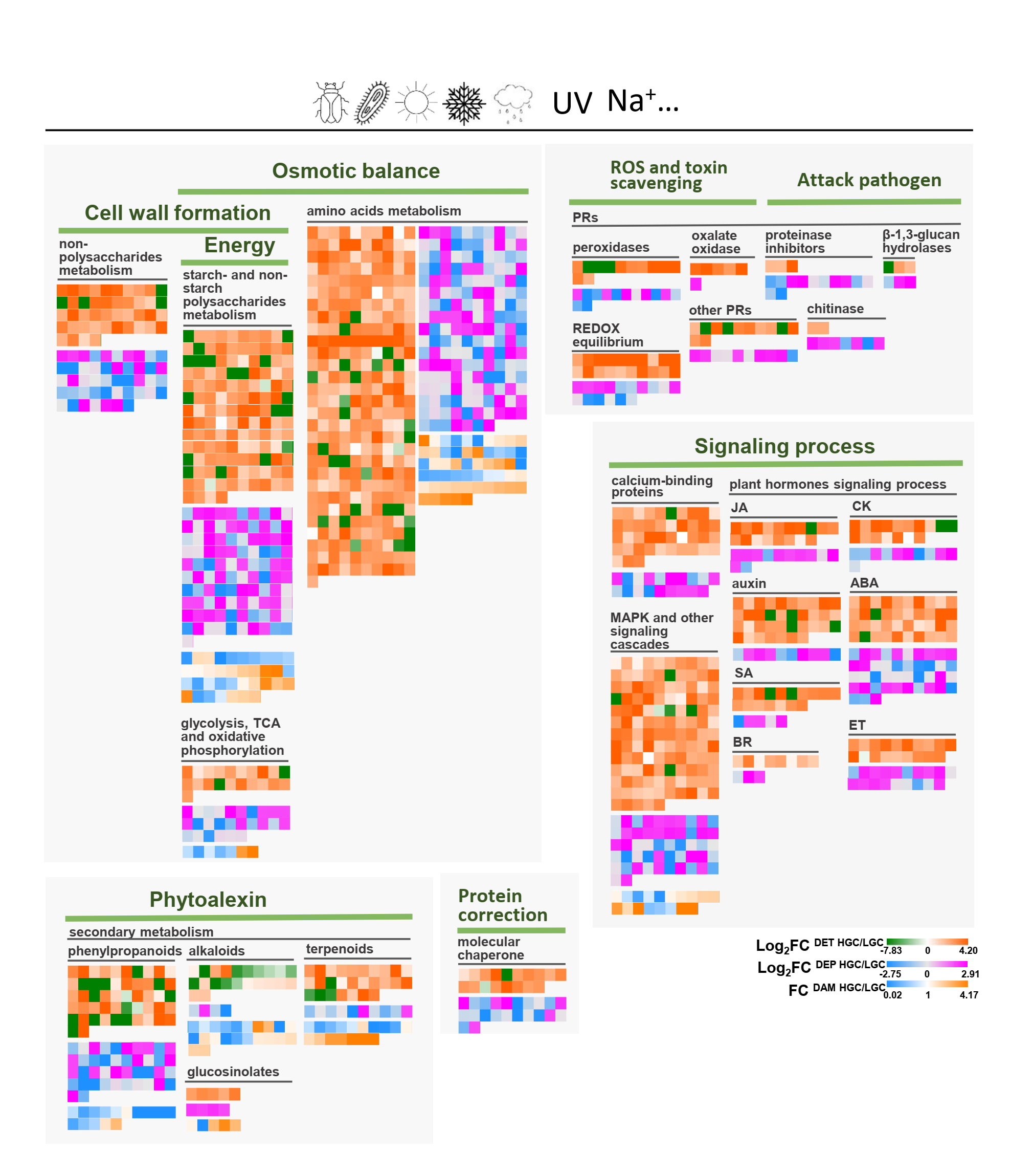 图2. 高β-葡聚糖糯大麦中多个胁迫响应过程增强