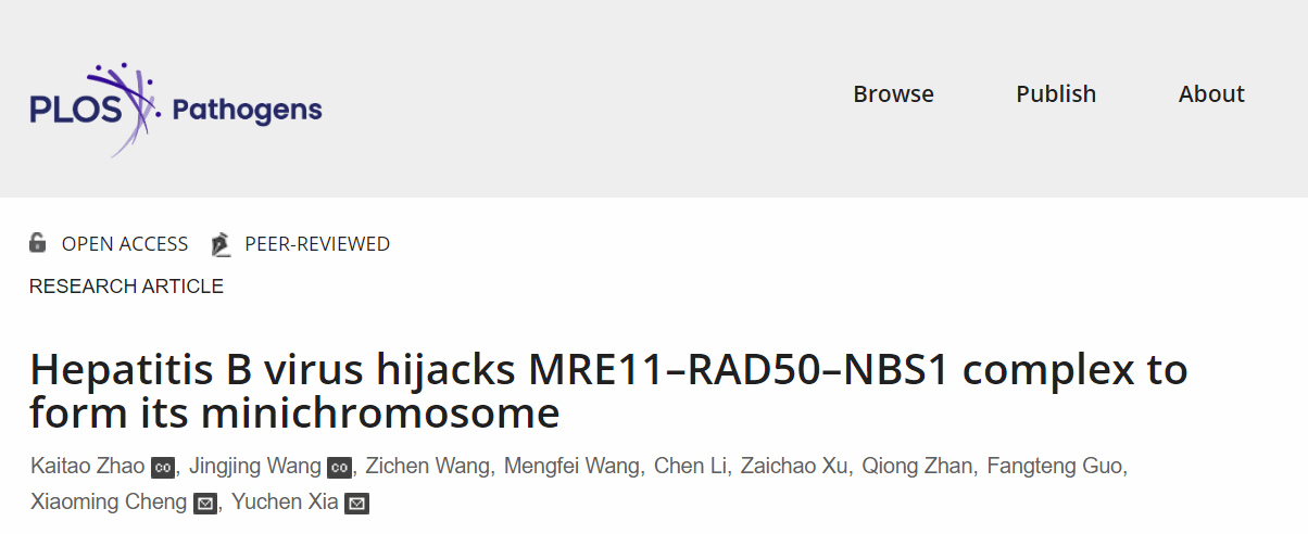 近日,病毒学国家重点实验室/武汉大学 泰康医学院( 基础医学院 ) 医学病毒学研究所 /武汉大学泰康生命医学中心 夏宇尘教授 研究 组在国际 学术 期刊 PL O S Pathogens上在线 发表题为 Hepatitis B virus hijacks MRE11-RAD50-NBS1 complex to form its minichromosome 的研究论文