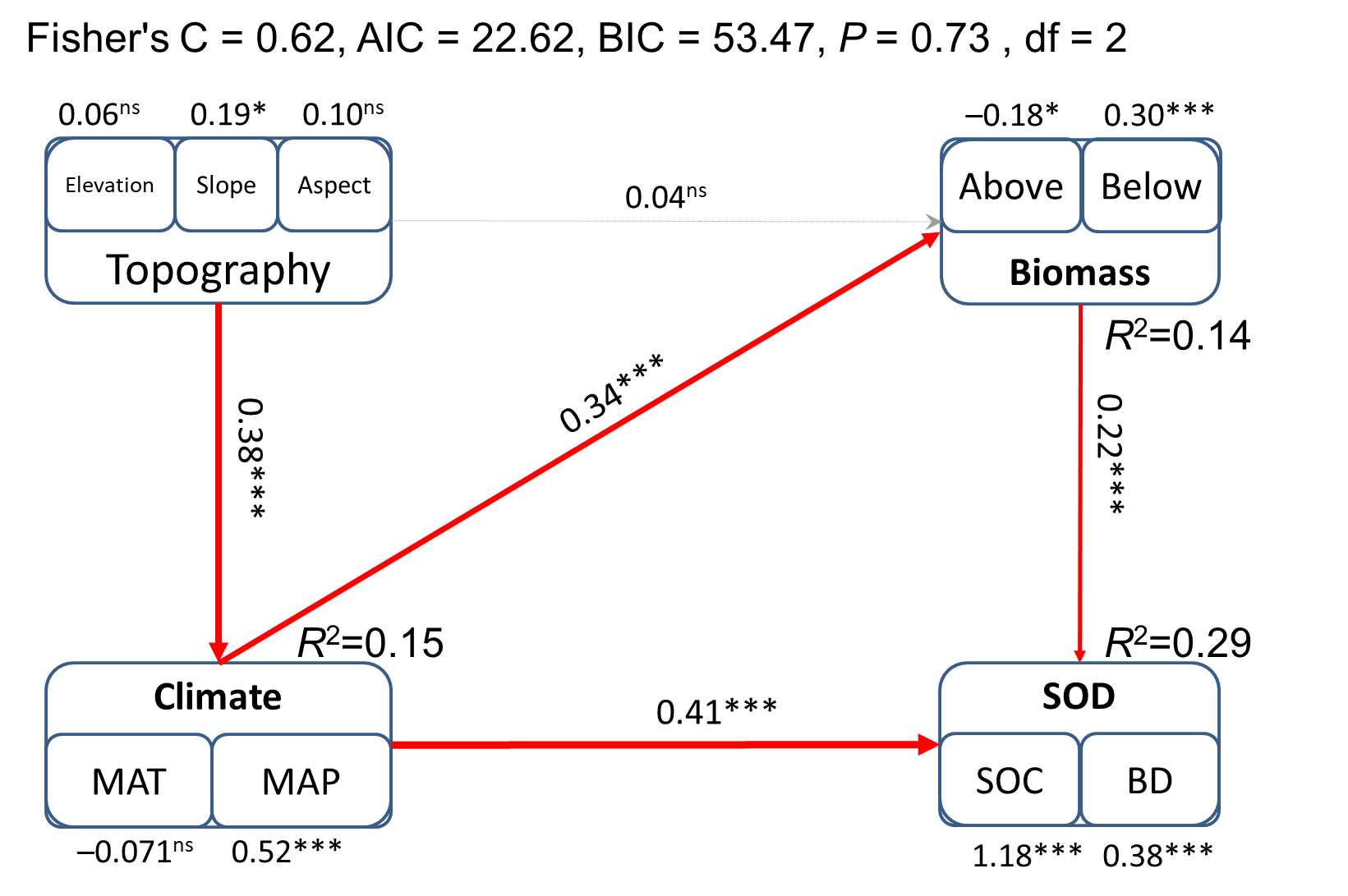 青海高原高寒草地生态系统碳储空间格局的结构方程模型