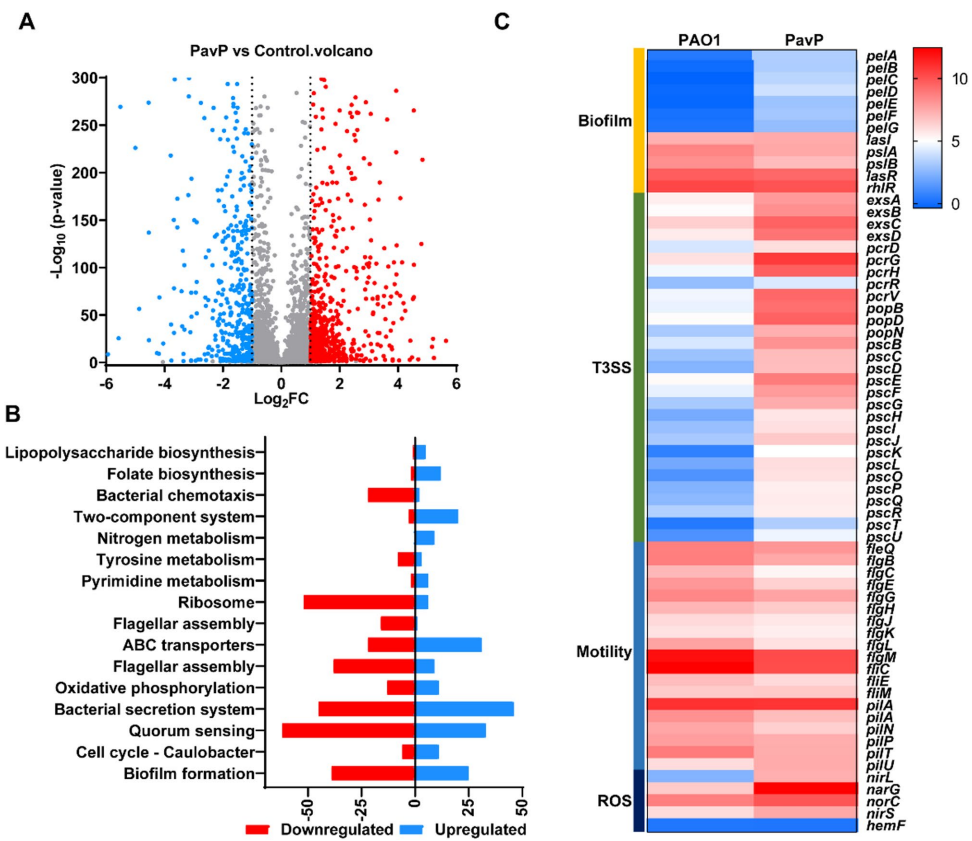 为解决多重耐药铜绿假单胞菌感染治疗难题,研究人员开展噬菌体编码蛋白PavP调控毒力机制研究,发现该蛋白在抑制细菌生长同时,通过诱导活性氧(ROS)积累、调控生物膜形成、运动性及III型分泌系统(T3SS)表达,显著减弱细菌致病性,为开发双功能抗菌剂提供新策略。