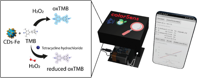 四环素残留检测新方法:基于铁协调碳点(CDs-Fe)的过氧化物酶模拟物结合便携式Arduino设备实现高灵敏度现场监测,检测限1.34 μM,线性范围17-67 μM,适用于水质评估。