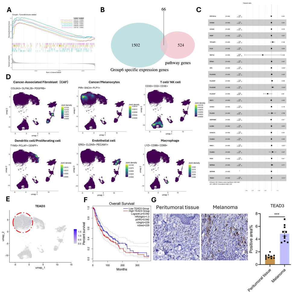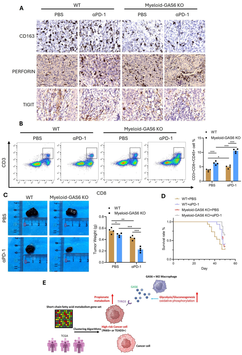 本研究针对黑色素瘤异质性及免疫治疗抵抗难题,通过多组学分析发现高危亚型(Group 6)存在短链脂肪酸代谢紊乱,首次揭示TEAD3high肿瘤细胞通过GAS6-TYRO3配体-受体轴与M2巨噬细胞互作,诱导Mmut介导的甲基丙二酸积累促进肿瘤进展。髓系特异性GAS6敲除可增强抗PD-1疗效,为靶向代谢-免疫轴联合治疗提供新策略。