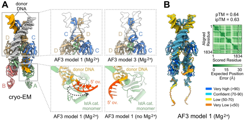 冷冻电镜与AlphaFold3在IS21转座复合物结构解析中的比较:揭示人工智能预测的边界与突破