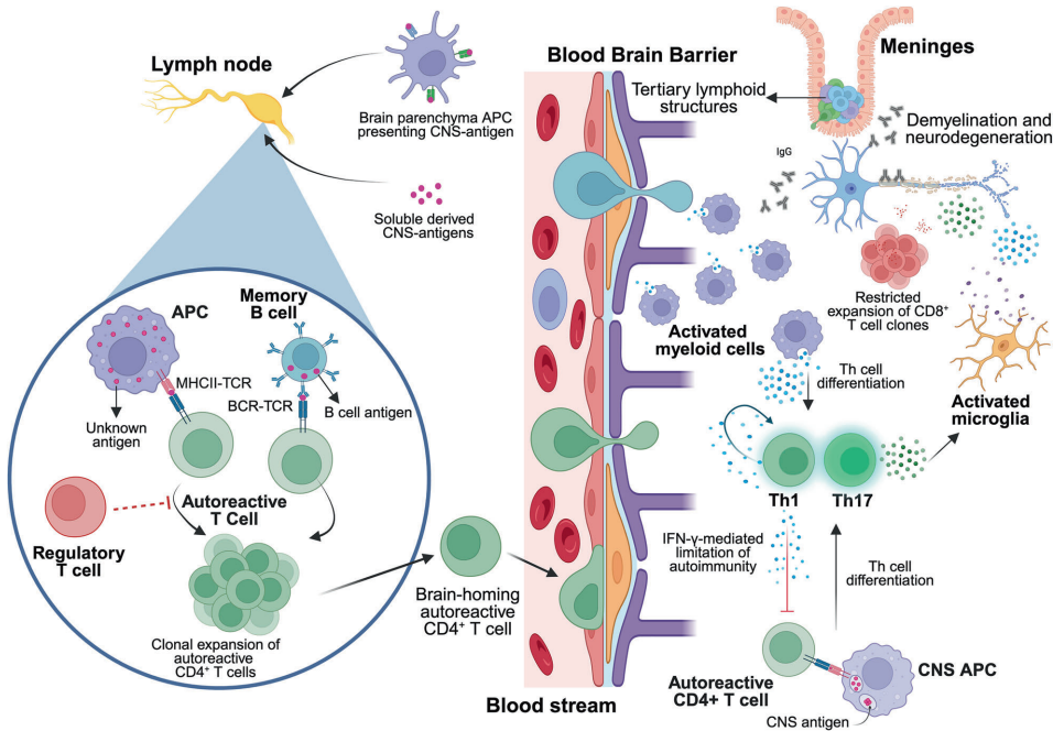 本综述系统阐述多发性硬化症(MS)的分子机制与治疗突破,重点解析抗原特异性免疫疗法(ASI)通过调节Treg细胞、靶向髓鞘抗原(MBP/MOG/PLP)等创新策略,相比传统免疫抑制剂(DMTs)可精准恢复免疫耐受。文章深入探讨MS的遗传(HLA-DRB1 * 1501)、环境(EBV感染/维生素D缺乏)及表观遗传互作机制,并涵盖BTK抑制剂、造血干细胞移植(HSCT)等前沿进展,为转化医学提供新方向。