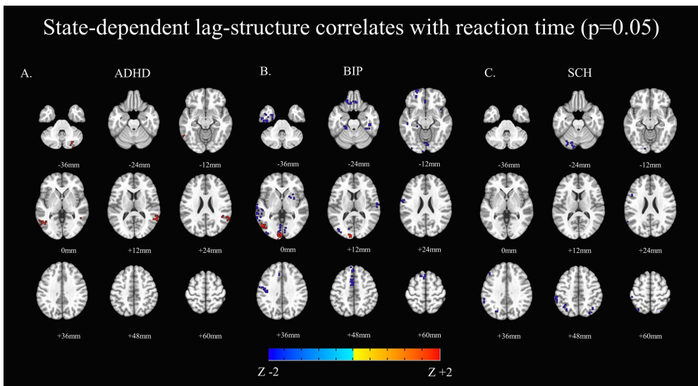 fMRI滞后结构在精神疾病中的状态依赖性:跨ADHD、双相障碍与精神分裂症的神经动力学研究