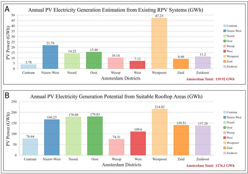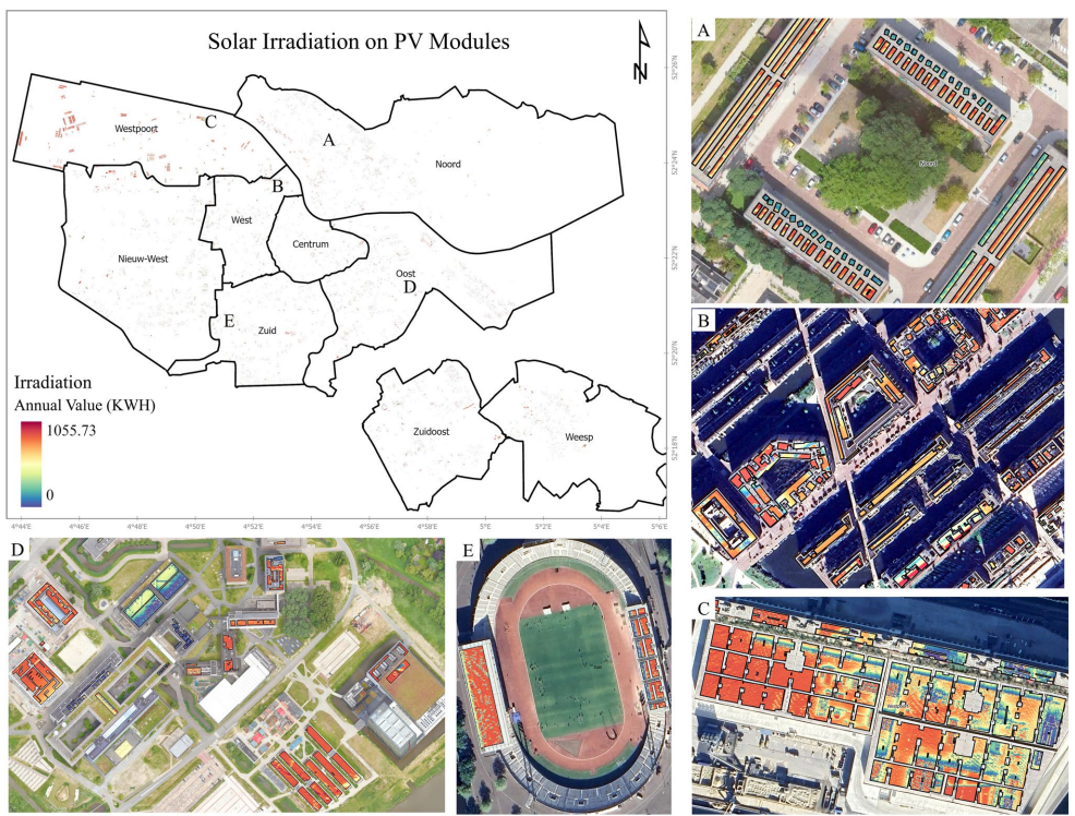 本研究针对阿姆斯特丹等追求净零排放城市对精准评估屋顶太阳能潜力的迫切需求,创新性地结合高分辨率地理空间数据与先进深度学习集成模型,实现了现有太阳能板识别和未开发适宜屋顶区域的精准定位。通过性能加权多数投票的集成方法,模型准确率达0.95,F1分数0.91。研究开发了考虑月际云量数据的大气透射率和漫射分数调整的新型太阳辐射模型,揭示现有安装年潜力140 GWh,未开发潜力达1276 GWh,为城市规划者优化太阳能部署提供了时空精细化方案,有力支持2050年碳中和目标。