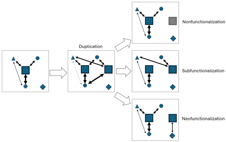 本综述深入探讨了直系同源与旁系同源蛋白功能进化的前沿动态,强调从定性描述转向定量(如Michaelis-Menten动力学参数kcat、KM)与生物物理(如Boltzmann分布)框架的重要性。文章系统梳理了基因复制后旁系同源的非功能化、亚功能化(Subfunctionalization)与新功能化(Neofunctionalization)命运,并挑战了“直系同源猜想”(Ortholog Conjecture),指出功能演变受序列、表达剂量、 epistasis及选择压力共同塑造,为进化生物学与系统医学研究提供了新范式。