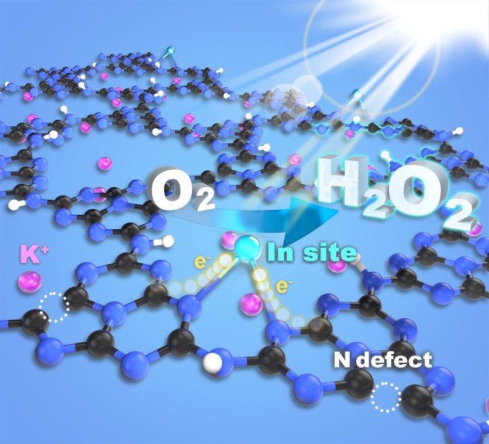在钾聚(庚嗪亚胺)中,由于铟位点和氮缺陷的作用,电子的局域化程度得到增强,从而促进了高效的光催化H2O2分解过程