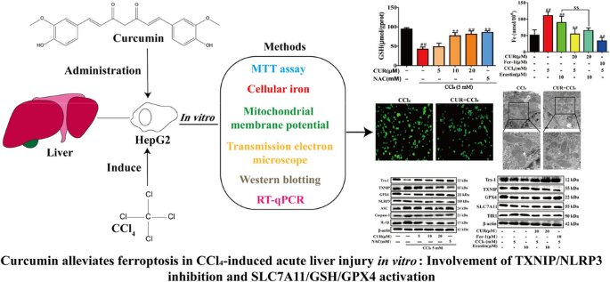 姜黄素可缓解体外CCl?诱导的急性肝损伤中的铁死亡(ferroptosis):其机制涉及TXNIP/NLRP3途径的抑制以及SLC7A11/GSH/GPX4途径的激活