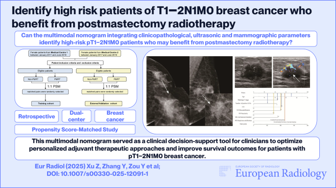 问题 这种整合临床病理学、超声学和乳腺X线摄影参数的多模态评分模型能否识别出可能从术后放疗中获益的高风险pT1–2N1M0期患者?