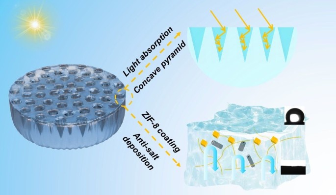 Janus界面工程改进了与ZIF-8@Co9S8复合材料结合的水凝胶,该复合材料具有凹形金字塔图案,从而实现了高效的太阳能驱动水净化