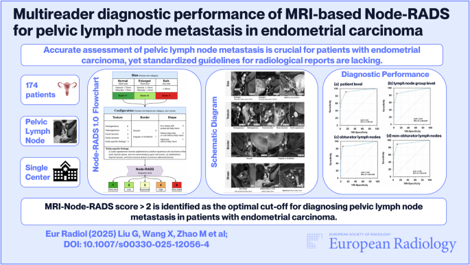 《European Radiology》:Multireader diagnostic performance of MRI-based Node-RADS for pelvic lymph node metastasis in endometrial carcinoma