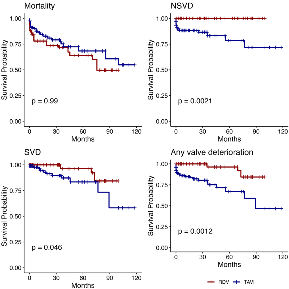 本研究针对TAVI在真实世界中长期瓣膜耐久性及成本效益的争议,通过回顾性队列分析对比TAVI与RDV的临床结局与经济负担。结果显示,TAVI组结构性瓣膜衰败(SVD)与非结构性瓣膜衰败(NSVD)发生率显著更高(加权后aHR=5.08),且人均成本(73,403美元)远超RDV(42,629美元)。成本效益分析表明,在哥伦比亚医疗支付意愿阈值内,RDV为优势策略。研究强调需结合患者特征与经济因素个体化选择术式,为资源有限地区提供循证依据。