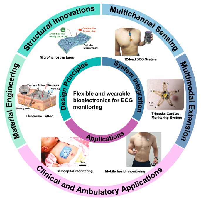 柔性可穿戴生物电子学技术推动实时ECG监测发展,材料创新提升性能与舒适度,结构设计增强适配性,系统集成多模态传感与无线传输,需解决长期可靠性和数据安全挑战,未来方向为材料-结构协同优化及AI辅助分析。