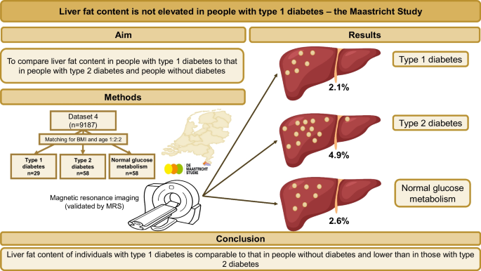《Diabetologia》:Liver fat content is not elevated in people with type 1 diabetes: the Maastricht Study