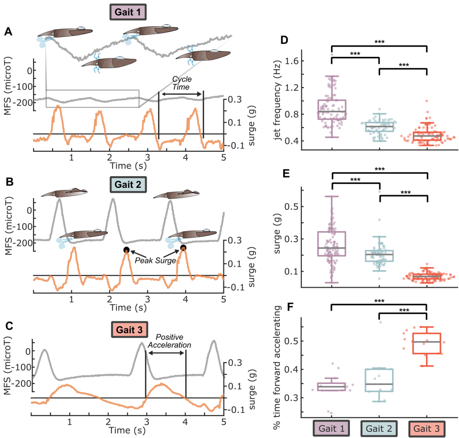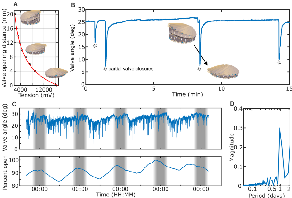 本研究针对传统生物记录标签难以直接测量动物远端附肢特定行为的难题,创新性地提出将磁力计与微型磁铁耦合的方法。研究人员通过在不同类群动物(包括扇贝、比目鱼、狗鲨和鱿鱼)身上进行实验,成功量化了瓣膜开角、呼吸频率、摄食时颌角以及推进运动模式等关键行为参数。该方法利用磁通量密度(MFS)变化与距离的关系,实现了对脆弱或小型附肢运动的高分辨率测量,为动物运动生态学、生理生态学和生物力学研究提供了强有力的新工具,显著拓展了原位行为观测的能力。