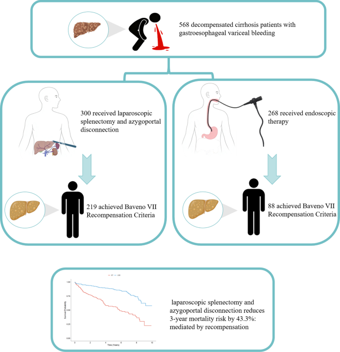 《Journal of Gastroenterology》:Validation of Baveno VII criteria for recompensation in patients with decompensated cirrhosis treated by laparoscopic splenectomy and azygoportal disconnection