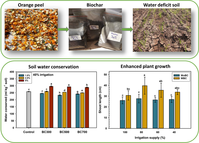 在缺水灌溉条件下,利用橙皮衍生的生物炭改善沙壤土的土壤水分保持能力和植物生长