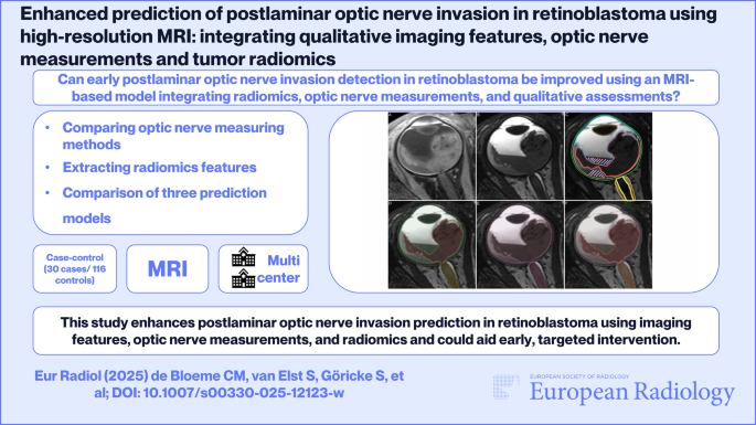 《European Radiology》:Enhanced prediction of postlaminar optic nerve invasion in retinoblastoma using high-resolution MRI: integrating qualitative imaging features, optic nerve measurements and tumor radiomics