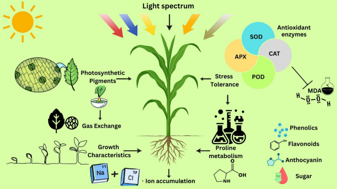 光谱光照质量通过提高光合效率和抗氧化机制,调节玉米(Zea mays L.)对盐胁迫的耐受性