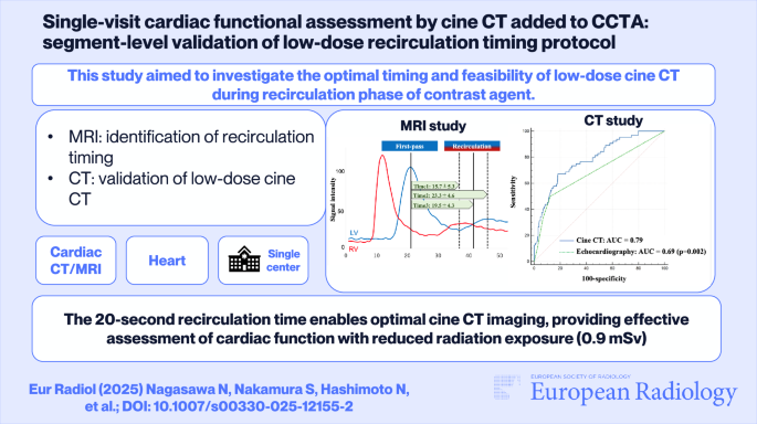《European Radiology》:Single-visit cardiac functional assessment by cine CT added to CCTA: segment-level validation of low-dose recirculation timing protocol