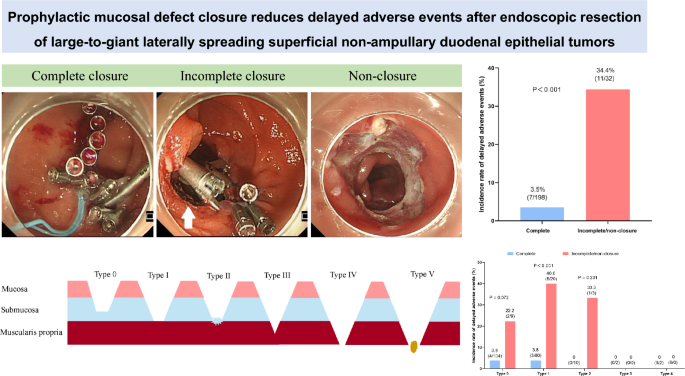 预防性黏膜缺损闭合可减少内镜切除大型至巨型侧向扩散的浅表非壶腹段十二指肠上皮肿瘤后的延迟性不良事件