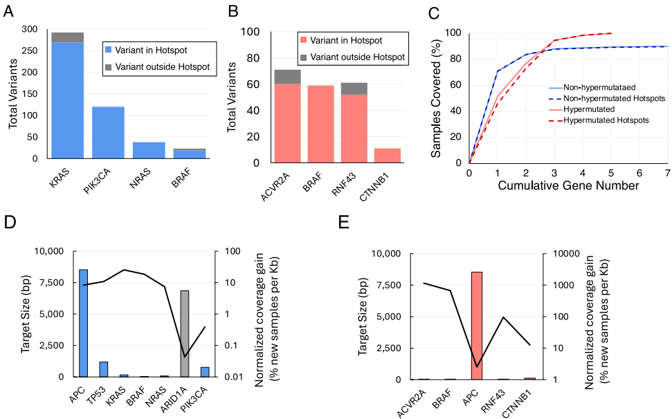 本研究针对循环肿瘤DNA(ctDNA)检测中因测序深度不足导致的早期癌症漏检难题,开发了OPTIC(Oncogene Panel Tester for Identifying Cancers)生物信息学流程。通过集合覆盖算法从2,940例结直肠癌(CRC)样本中筛选出APC、TP53、KRAS等9个核心基因的热点突变区域,构建仅10,975碱基的微型测序面板,覆盖96.3%的病例。该面板可实现超高深度测序(理论深度>72,000×),显著提升ctDNA检测灵敏度,为低成本、高精度的液体活检技术开发提供新范式。