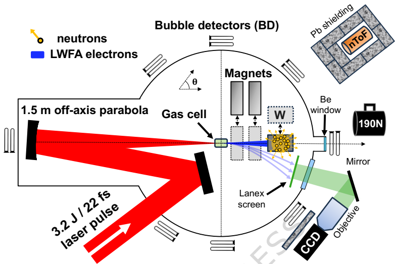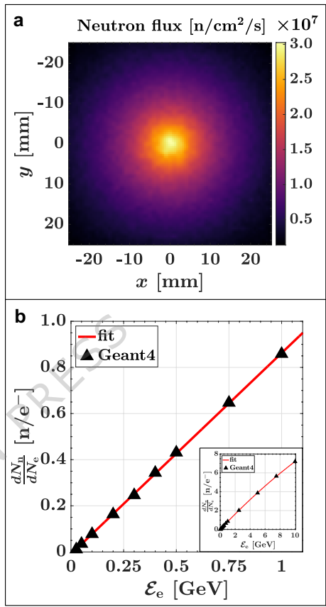 本研究针对传统中子源存在设施庞大、成本高昂及重复频率低等问题,开发了一种基于激光尾波场加速(LWFA)的高重复频率中子源。通过将电子加速至百MeV能级并轰击钨转换器,利用轫致辐射光核反应产生中子,实现了7.8×107 n/sr/s的平均通量记录,较传统靶面法向鞘层加速(TNSA)方案提升3个数量级。该紧凑型源为时间分辨中子成像、放射性同位素生产等应用提供了新范式。