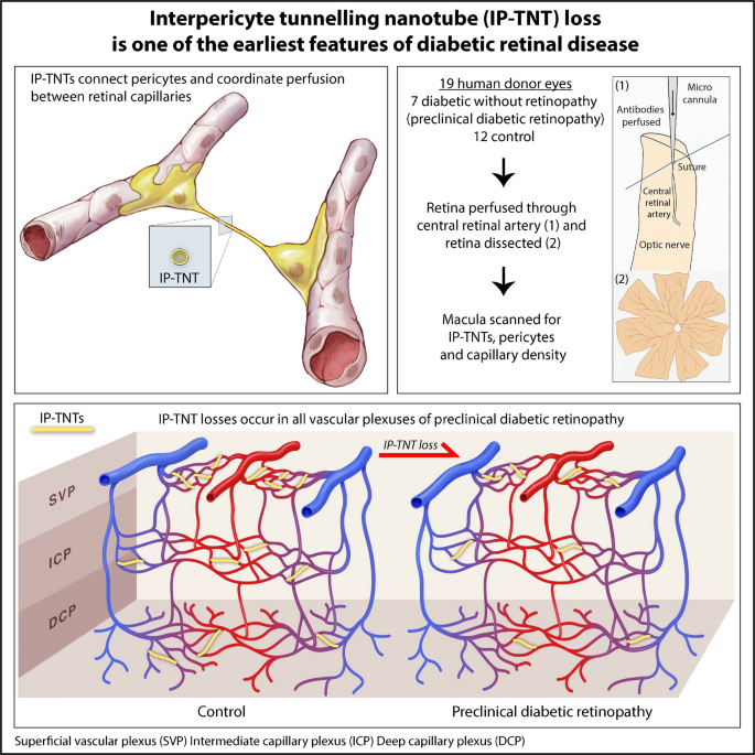 视网膜微血管中IP-TNTs的丢失是糖尿病视网膜病变早期特征,其通过影响内皮细胞通讯导致血流异常,需进一步验证并开发维持IP-TNTs结构的治疗手段。