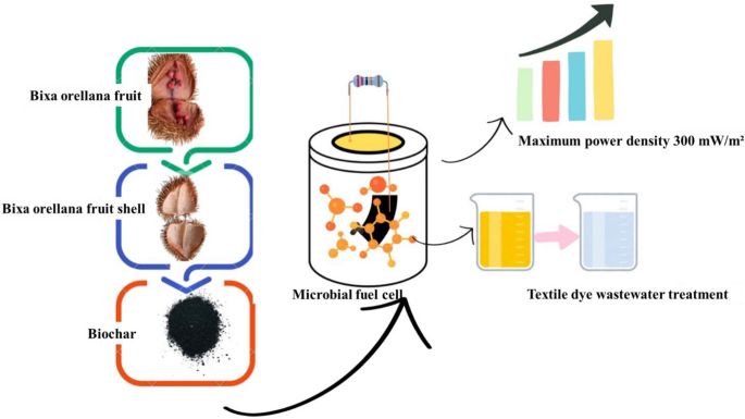 利用Bixa orellana果壳制备的生物炭,提升纺织染料废水处理效果并在微生物燃料电池中实现能源转化