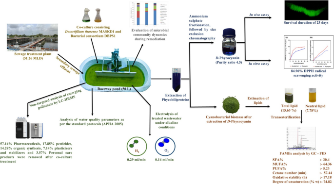 《World Journal of Microbiology and Biotechnology》:Synergistic co-culture of Desertifilum tharense MASKD1 and bacterial consortium DBPS1 in an integrated biorefinery for sewage remediation and recovery of phycocyanin, biodiesel and green hydrogen