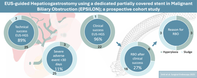 《Surgical Endoscopy》:EUS-guided hepaticogastrostomy using a dedicated partially covered stent in malignant biliary obstruction (EPSILON): a prospective cohort study