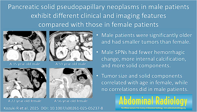 《Abdominal Radiology》:Pancreatic solid pseudopapillary neoplasms in male patients exhibit different clinical and imaging features compared with those in female patients