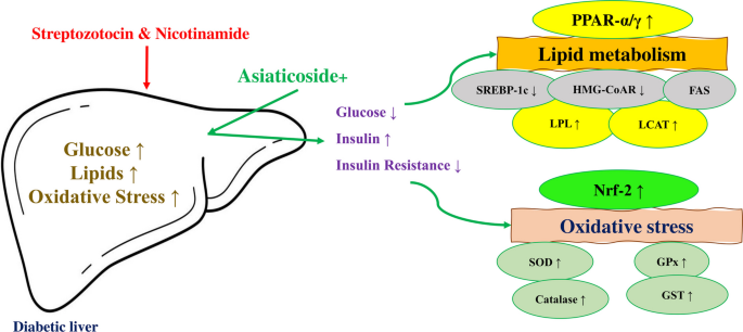 Asiaticoside通过调节PPAR-α/γ和SREBP-1c轴以及激活Nrf-2通路,减轻糖尿病大鼠的肝脏脂质代谢异常和氧化应激