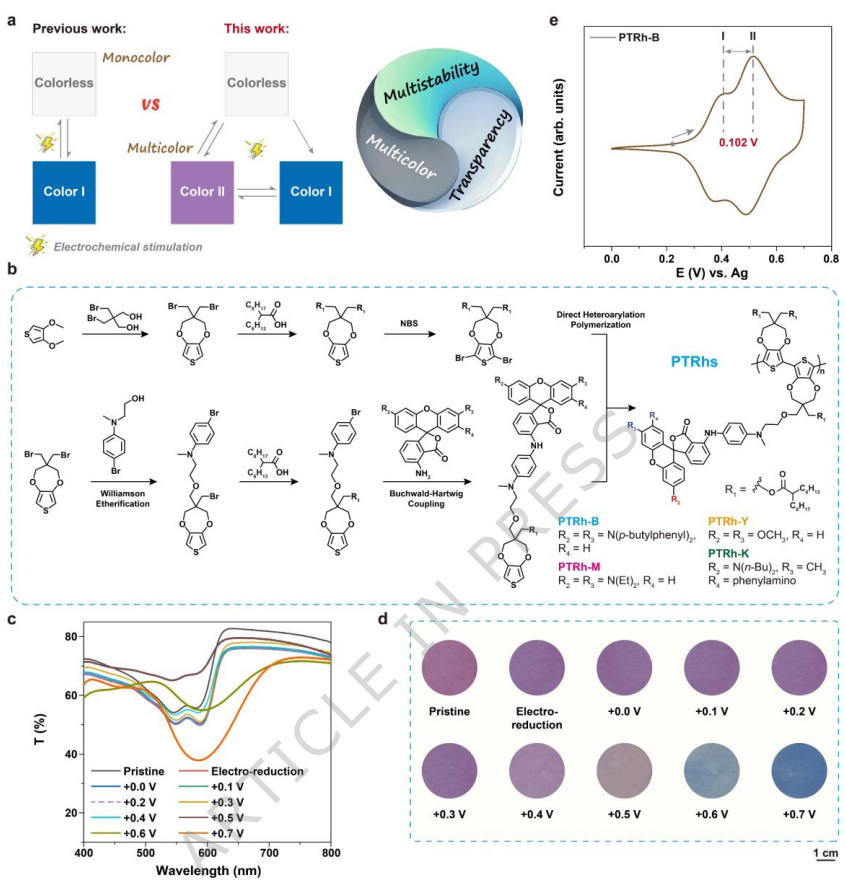 多色多稳态透明电致变色材料与显示技术:单分子设计实现高透光率与动态色彩调控