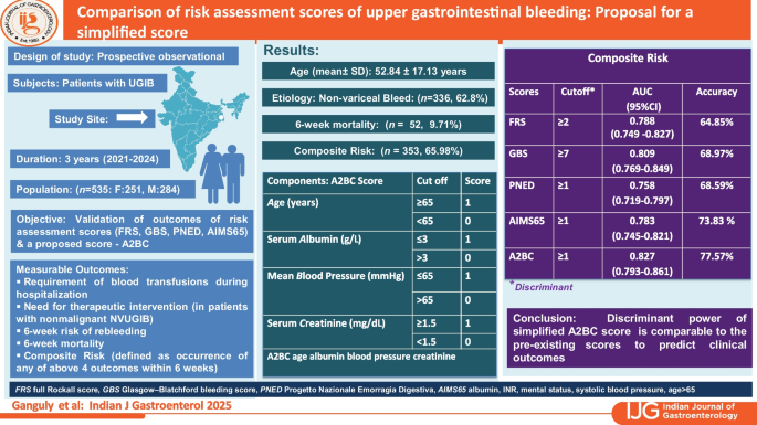 《Indian Journal of Gastroenterology》:Comparison of risk assessment scores of upper gastrointestinal bleeding: Proposal for a simplified score