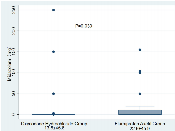 羟考酮组24小时BPS评分显著低于对照组(4.2±1.2 vs 4.7±1.6),48小时差异更明显(3.2±1.3 vs 3.5±1.7)。BPS>5分的患者比例在羟考酮组24小时为22.0%,仅为氟比洛芬酯组(34.3%)的2/3。
