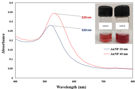 纳米粒子合成与表征:采用柠檬酸钠还原法成功制备了20 nm(AuNP20)和40 nm(AuNP40)两种金纳米粒子,透射电镜显示其单分散性良好,Zeta电位分别为-32.6 mV和-27 mV,表现出优异的稳定性。