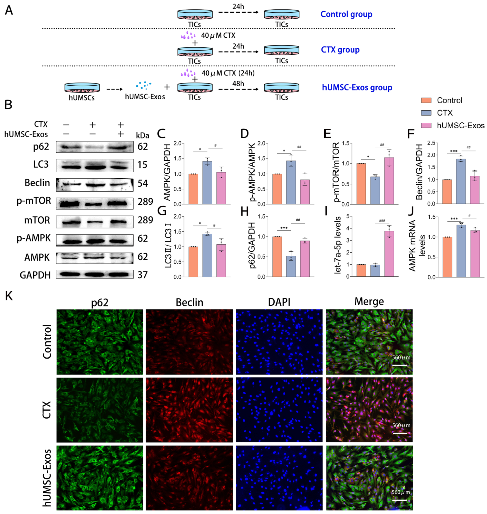 本研究针对早发性卵巢功能不全(POI)导致的不孕问题,由滨州医学院团队通过hUMSC-Exos干预,首次揭示了let-7a-5p通过靶向AMPK/mTOR通路抑制卵泡膜间质细胞(TICs)自噬的治疗机制。实验证实hUMSC-Exos能显著改善CTX诱导的卵巢形态和功能损伤,为POI临床治疗提供了新靶点。