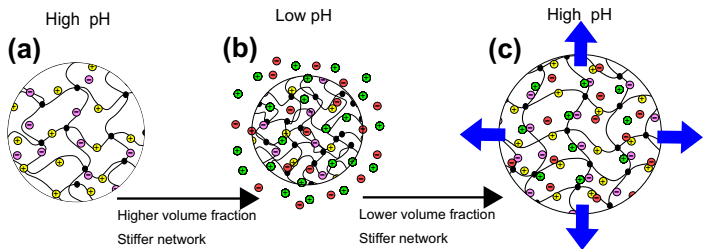 研究团队采用藻酸盐过表达的突变株P. aeruginosa△mucA和野生型PAO1,通过粒子追踪微流变技术(PTM)实时监测生物膜机械特性,结合NAC处理模拟抗菌过程。关键方法包括:1) 流式细胞培养系统构建3D生物膜;2) 荧光标记与共聚焦显微镜观察细菌定植;3) PTM技术定量弹性模量(G')和粘性模量(G");4) pH调控实验分析基质溶胀动力学。