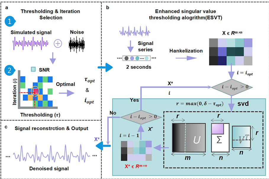 关键技术包括:1)采用光纤传感床采集100Hz的BCG信号;2)同步AD8232模块记录ECG(100Hz)及M型超声心动图(Mindray M7 Expert系统);3)ESVT算法通过汉克尔矩阵构建和迭代奇异值阈值实现信号降噪;4)纳入武汉地区85例受试者(健康67例、心律失常15例、HF7例)建立多病理学队列。