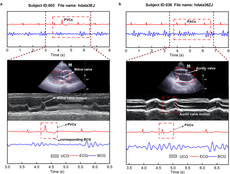 武汉理工大学与武汉大学中南医院的研究团队在《Scientific Data》发表了题为"A Multi-Pathology Ballistocardiogram Dataset for Cardiac Function Monitoring and Arrhythmia Assessment"的研究,建立了首个涵盖健康人群、心力衰竭(HF)及多种心律失常(AF、PVCs、PACs)的BCG数据集。研究同步采集了85名受试者的BCG、ECG和M型超声心动图数据,并开发了增强奇异值阈值(ESVT)算法进行信号降噪。结果表明,BCG与ECG的心率检测相关性达R=0.98,且在心律失常事件中能捕捉机械响应特征,为无创心脏监测提供了重要技术支撑。