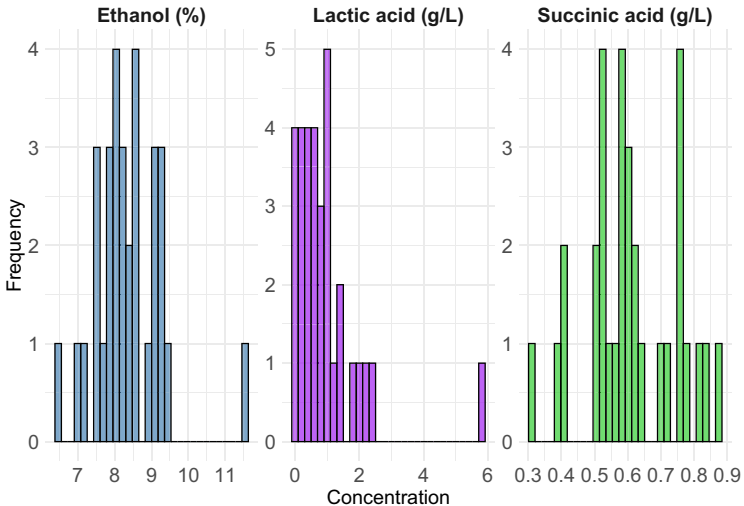 部分菌株(如LT133)能提升颜色强度至2.98,同时产生5.53 g/L甘油(高于酿酒酵母的4.86 g/L),有助于增强酒体饱满度。琥珀酸产量(0.40-0.88 g/L)的菌株差异也为风味调控提供了新维度。